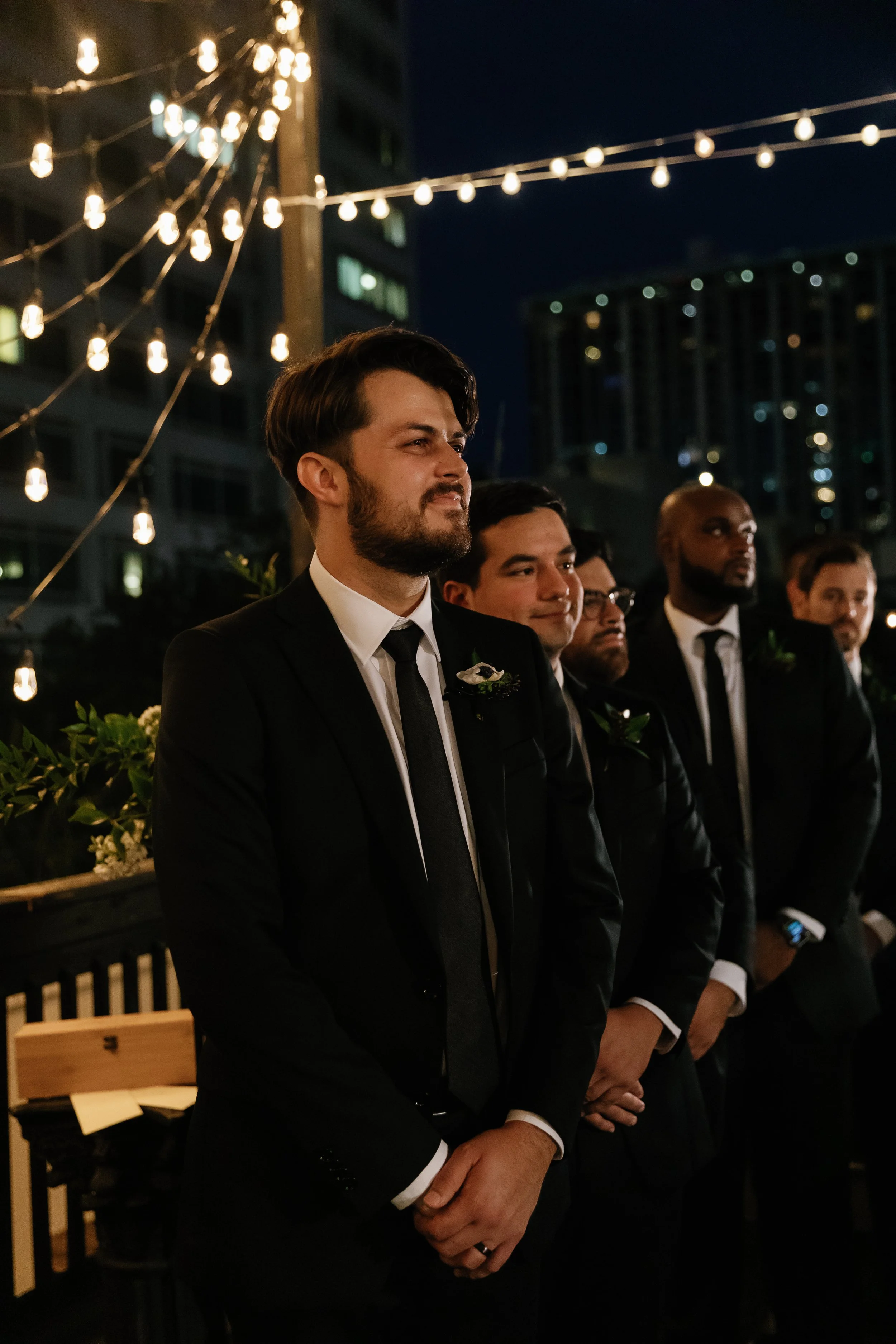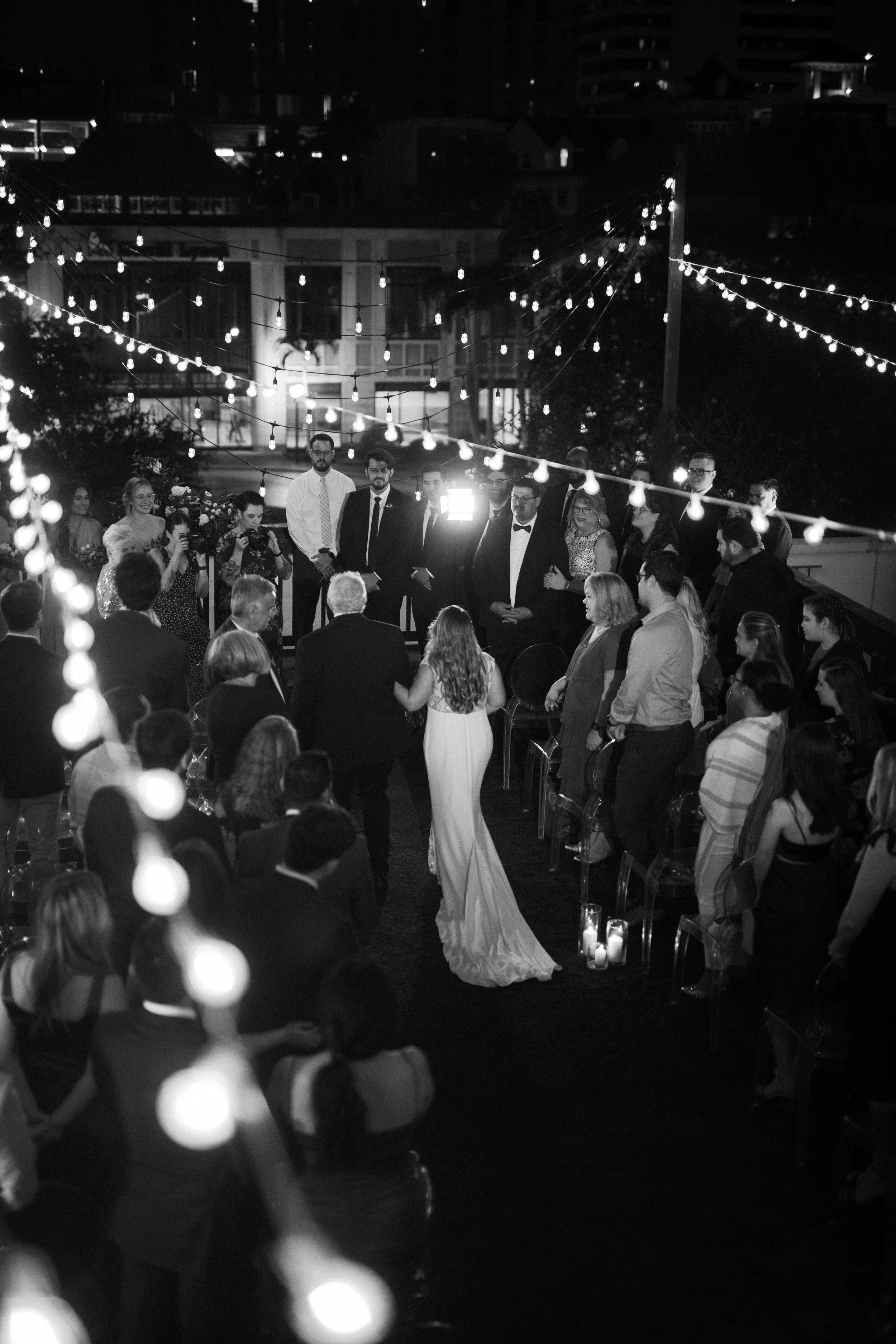 Worked with our rental company to include lights overhead and behind the ceremony for ambiance
